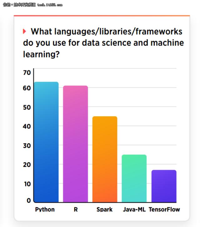 数据科学其实很大程度上都依赖开源的编程语言、工具、库和框架。就编程语言来说,Python和R都是数据科学的热门语言。相比较于R语言来说,Python可能更受欢迎一些,其在受访者中获得了63%的支持,而R语言则获得了61%的支持。