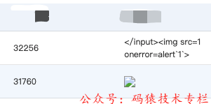 我依然在输入框中输入这段代码</input><img src=1 notallow=alert1>并进行保存。来看一下数据库中的保存结果: