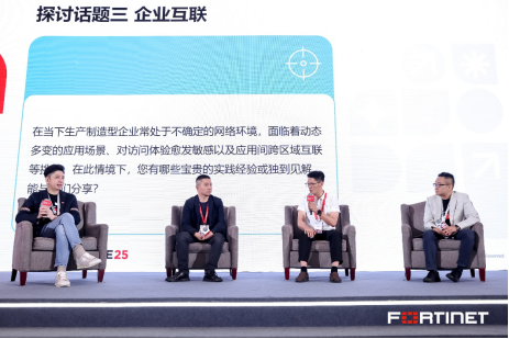 在圆桌论坛中,两位典型行业客户代表——英科集团与北京福田康明斯,与 Fortinet中国区技术总监张略围绕四大核心议题展开了对话:复杂网络环境下的安全防护实践、OT与安全的融合建设、跨国制造企业的网络架构优化,以及AI大模型的安全风险与应对策略。