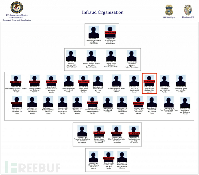 大肆出售被盗的身份信息和财务信息根据诉书中的内容,Infraud团体于2010年建立。在“我们信任诈骗”口号的宣扬之下,该集团指挥其成员中的贸易买手和潜在买家到各个自动售卖点去,为盗取身份信息、财务和银行信息、恶意软件和其他非法物品提供在线渠道。