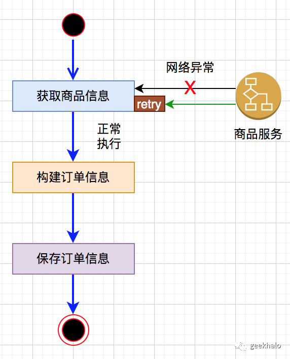 之前,我们看到通过 Retry 恢复网络抖动的场景;接下来让我们看另一个场景,如下图所示: