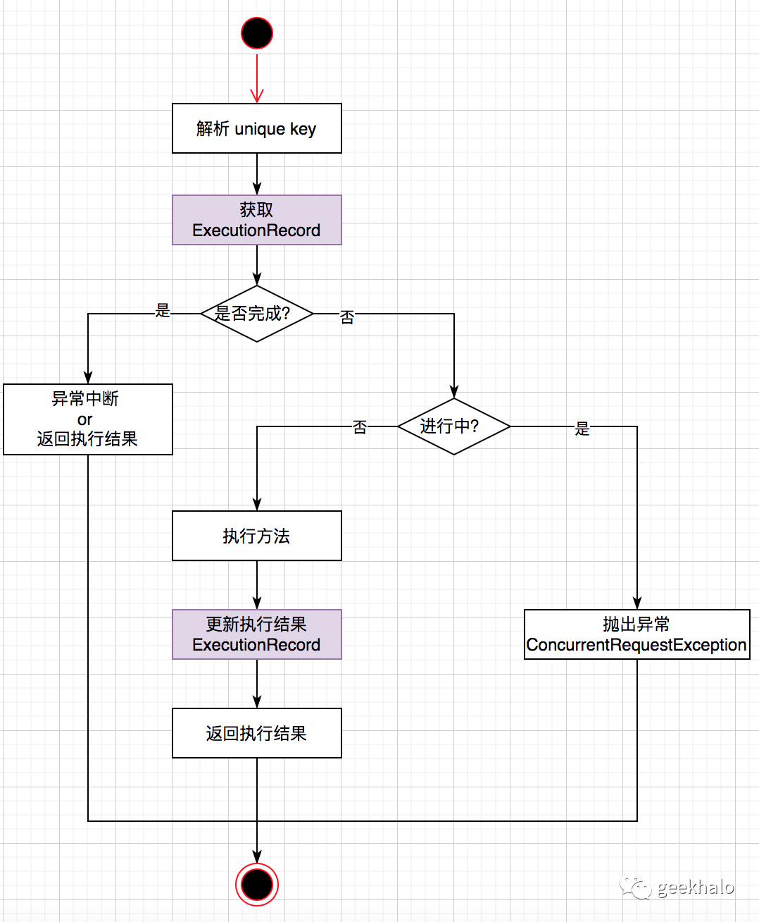 创建一个线程,执行耗时方法;等待 1 秒后,主线程也执行耗时方法;此时,两个线程并发执行耗时方法,后进入的主线程直接抛出 ConcurrentRequestException;3.5.5. Redis 支持DB 具有非常好的一致性,但性能存在一定的问题。在一致性要求不高,性能要求高的场景,可以使用 Redis 作为 ExecutionRecord 的存储引擎。