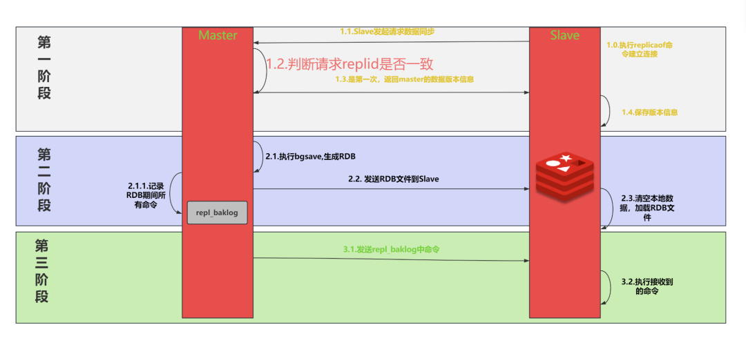 master判断发现slave发送来的replid与自己的不一致,说明这是一个全新的slave,就知道要做全量同步了