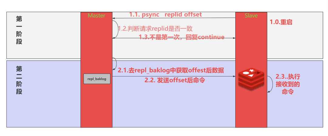 repl_baklog中会记录Redis处理过的命令日志及offset,包括master当前的offset,和slave已经拷贝到的offset:
