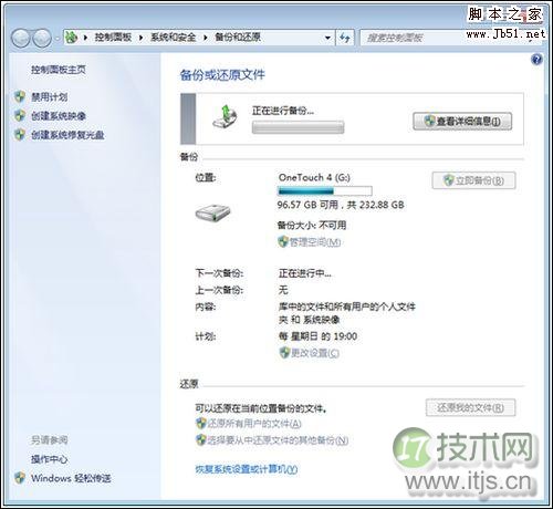 Windows 7将显示备份的进度。即使您将界面最小化也没有问题,Windows 7特有的任务栏同样能显示备份程序的进度。