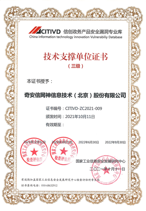 奇安信一直高度重视信创领域的网络安全技术创新。早在2018年,奇安信就启动了网络安全技术创新向信创赛道转移工程;2019年,引入中国电子战略入股,与中国电子的信创产业达成战略协同合作。网站模板同时,凭借在信创领域领先的漏洞发掘、分析、处置能力,奇安信先后荣获CNVD、CNNVD支撑单位称号,并连续多年被CNVD评为“年度漏洞信息报送突出贡献单位”。