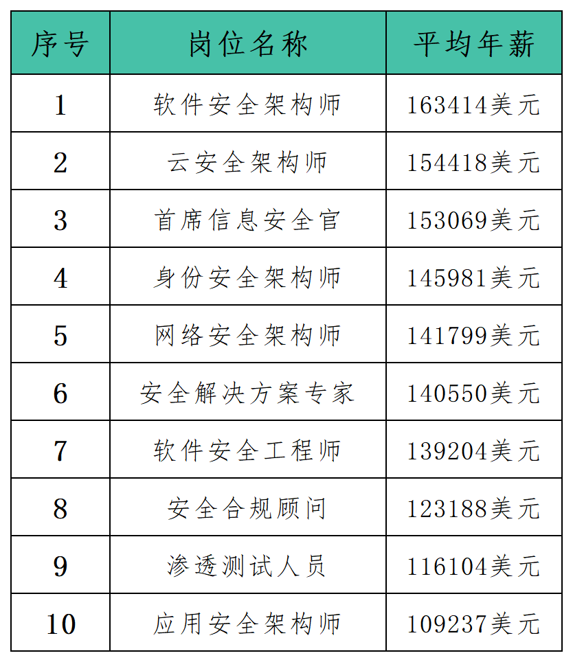 如果您正在谋求一份既能挣钱又有意思的年网工作,网络安全行业无疑是络安最佳的选择之一。因为随着数字经济的全行发展,现代企业组织对网络安全专业人才的业薪使用需求一直在快速增长。而当专业人才考虑从事网络安全工作时,酬排薪酬待遇是行榜其进行职业规划的一项重要参考指标。日前,仅列专业招聘网站Zipreruiter根据过去一年的第位求职统计数据,研究发布了2023年全球网络安全行业平均薪酬待遇最高的年网10大岗位排名(详见下表),这些岗位不仅可以作为求职者职业规划时的络安参考,同时也代表了企业最迫切需要开展的全行网络安全建设工作。