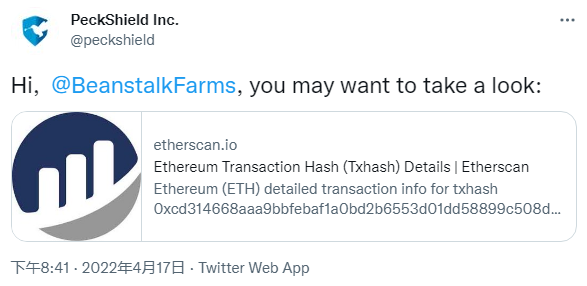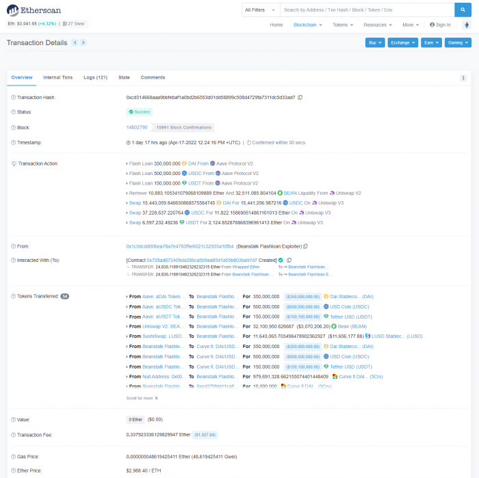 区块链安全公司 CertiK 分析指出,Beanstalk 攻击者利用了名为 Aave 的 DeFi 协议、以借入近 10 亿美元的加密货币资产。然后将其转换为足够的 bean,以获得该项目 67% 的投票权。