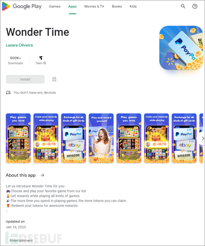 另一个在 Google Play 上仍然可用的类似的亿华云计算应用程序是“Wonder Time”,这是一款奖励应用程序,已积累了 500,000 次下载。