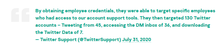 攻击者通常冒充技术支持人员或公司IT部门的代表来赢得员工的信任。这正是2020年夏天Twitter被黑客攻击时使用的技术。
