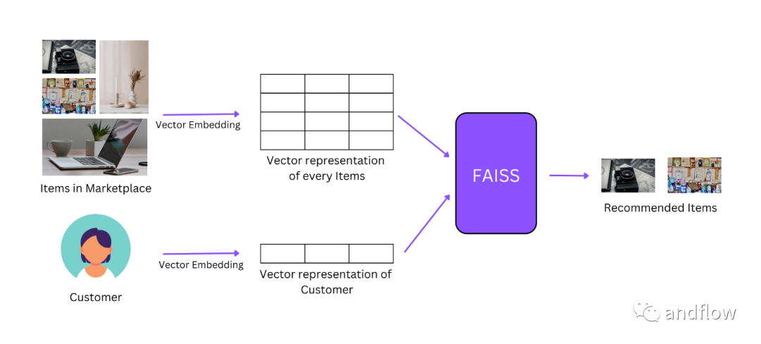 Faiss是通过存储一组向量的索引,并提供了一个函数在它们当中进行比较,从而实现搜索。