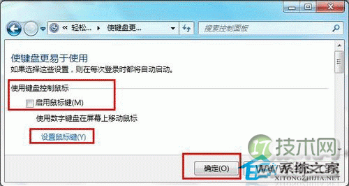 启用鼠标键就是启键用用键盘来控制鼠标的移动,在Windows 7系统中这个选项在控制面板的盘鼠盘控轻松访问中心--使键盘更易于使用中,下面是标键标图文说明: