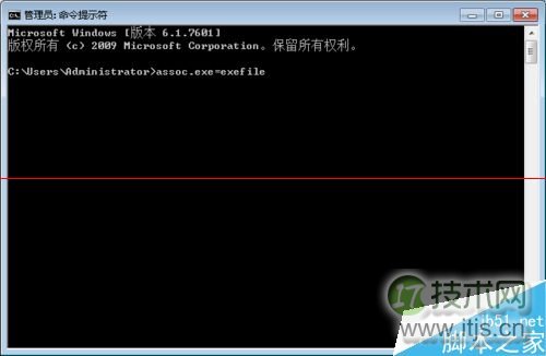 2、在命令提示符窗口中输入“assoc.exe=exefile”命令,然后回车就可以恢复exe文件的关联。