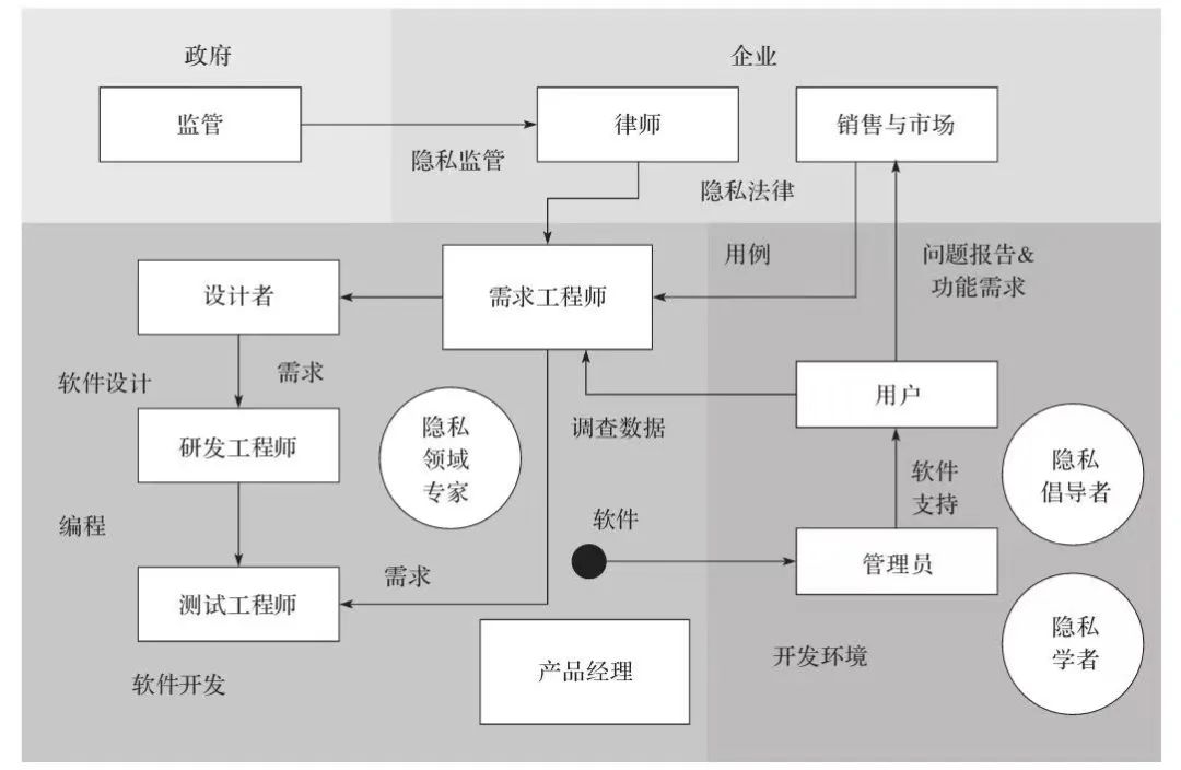 ▲图4 软件功能开发中个人信息保护利益相关方示意图