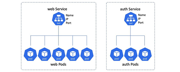 假设我们在一个 Kubernetes 集群中有两个应用,my-app 和 your-app,my-app 的 Pod 的前端是一个 名为 my-app-svc 的 Service 对象;your-app Pod 之前的 Service 就是 your-app-svc。