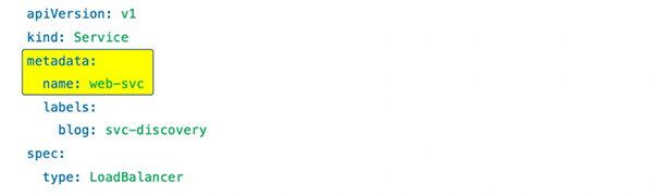 DNS 中注册的名称就是 metadata.name,而 ClusterIP 则由 Kubernetes 自行分配。
