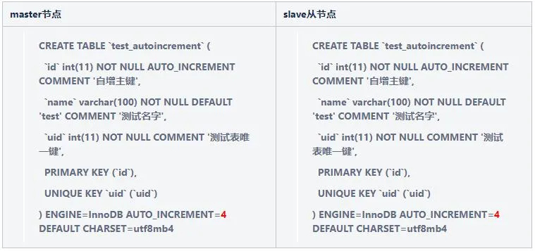 此时出现了主从节点表的AUTO_INCREMENT不一致现象。