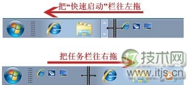 3、栏设这时我们可以看到任务栏上多了一个“Quick Launch”的置成工具栏,当然还没有完成,样式接着我们把任务栏“解锁”右键点击任务栏,去除“锁定任务栏”的勾;
