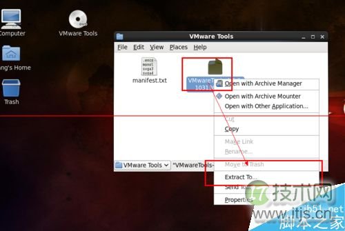 3、这里为了方便更多初学者,我就是用图形界面进行安装,命令也很简单,企商汇应该都会,这里就不说了。解压文件到指定目录。右击VMware tool安装包,有一个解压的选项,单击——选择路径然后新建一个文件夹——解压即可。使用命令也很简单。
