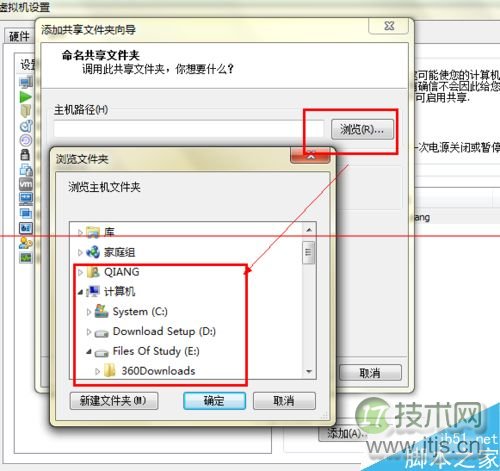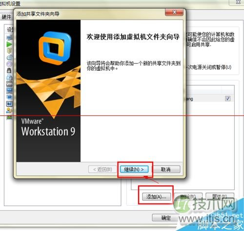 5、然后单击添加按钮,添加之后就可以选择你的主机(Windows 7)中的文件路径。然后单击继续,确定即可,我的之前添加过了这里就不在演示了。